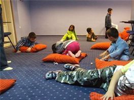 Grup: 10-11 yaş; 12 erkek çocuğu; okul salonu